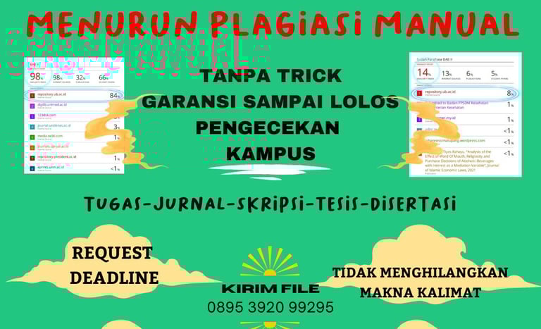Jasa parafrase penurun plagiasi tanpa trick, harga dapat dikonsultasikan melalui WhatsApp kami 0895-3920-99295.