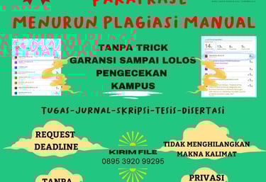 Jasa parafrase penurun plagiasi murni manual tanpa trick dan bergarasansi, harga dapat dikonsultasikan melalui