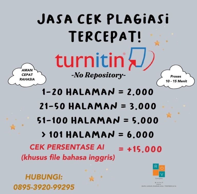 Layanan cek plagiasi sangat membantu saya. Sangat rekomendasi untuk semua mahasiswa menggunakan jasa ini.